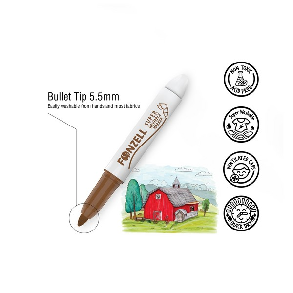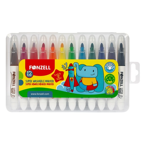 ماژیک 12 رنگ قابل شستشو جعبه پلاستیکی فونزل